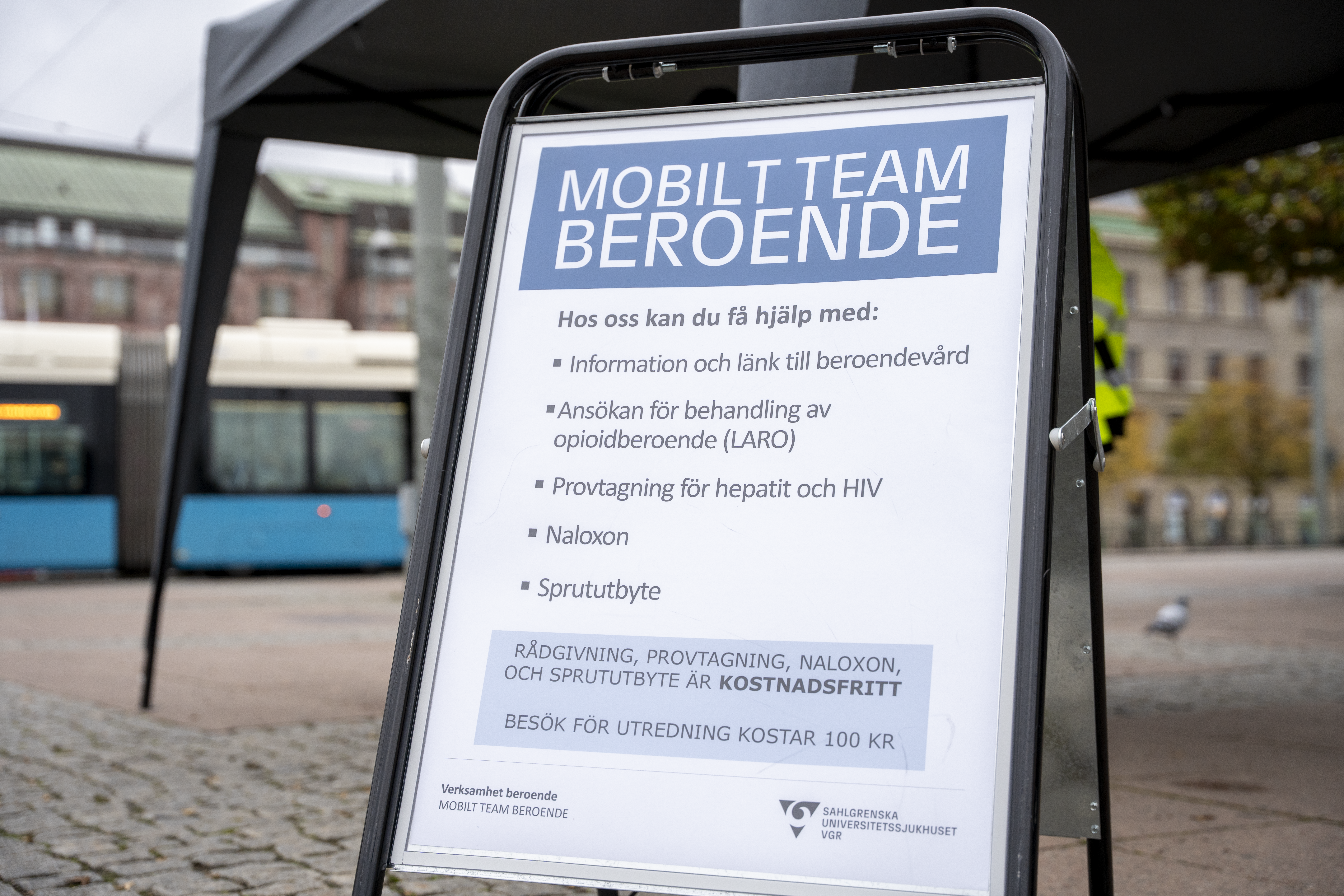 Det mobila beroendeteamet i Göteborg är inne på sitt tredje år. Uppdraget är att möta patienterna där de finns och erbjuda beroendevård och provtagning samt öka tillgången till läkemedlet naloxon. Hittills har ett 40‑tal personer påbörjat behandling via teamet och spridningen av naloxon har haft önskad effekt mot överdoser.