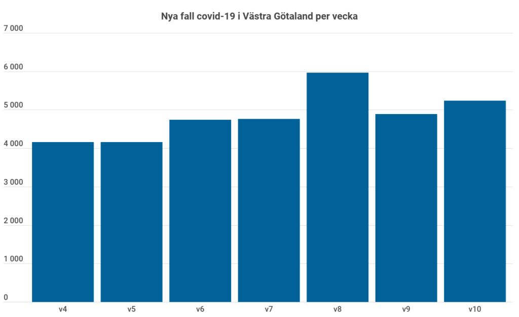 Vecka 10 konstaterades 5 240 nya fall av covid-19 i Västra Götaland, vilket är en ökning med sju procent jämfört med veckan innan. Även behovet…