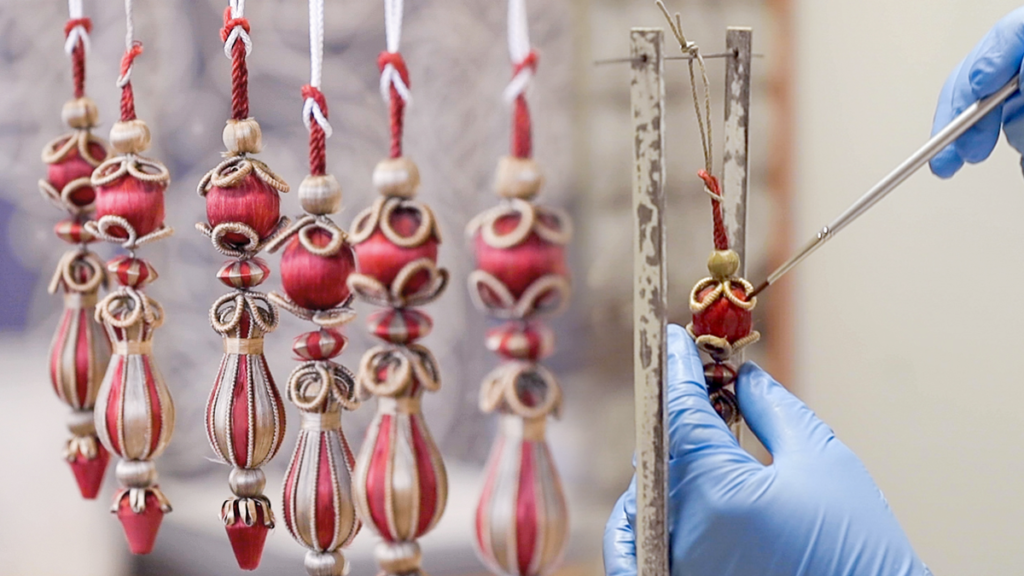 Just nu renoveras Dicksonska palatset i centrala Göteborg, för att nästa sommar öppna för allmänheten. I det arbetet ingår restaurering av 750 silkekrepiner – gardintofsar…